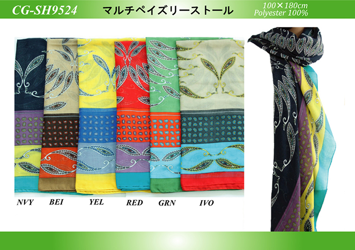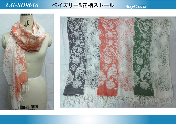 ペイズリー&リーフ柄ストール
