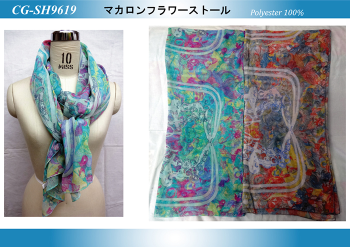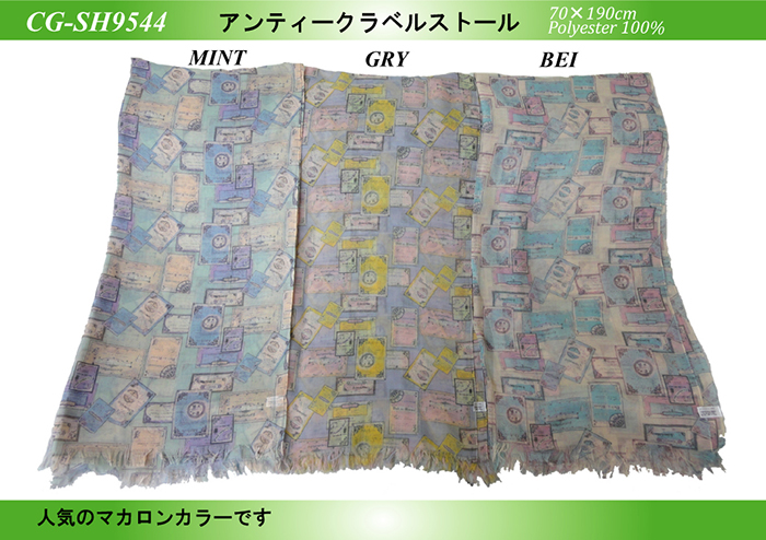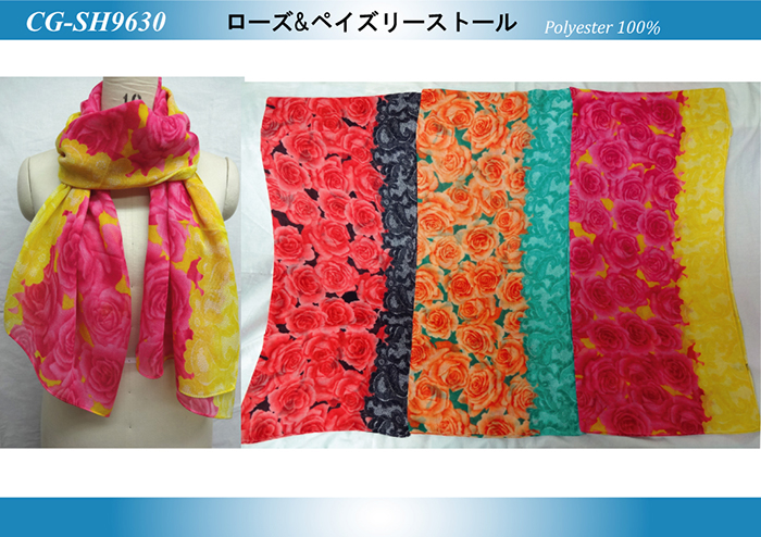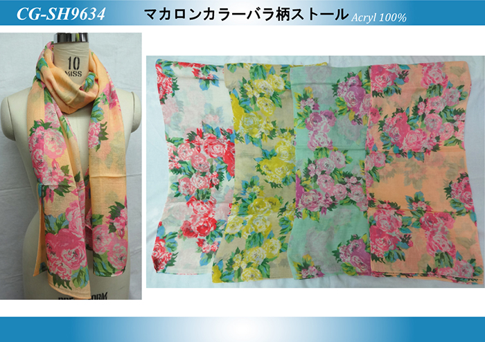 マカロンカラーバラ柄ストール